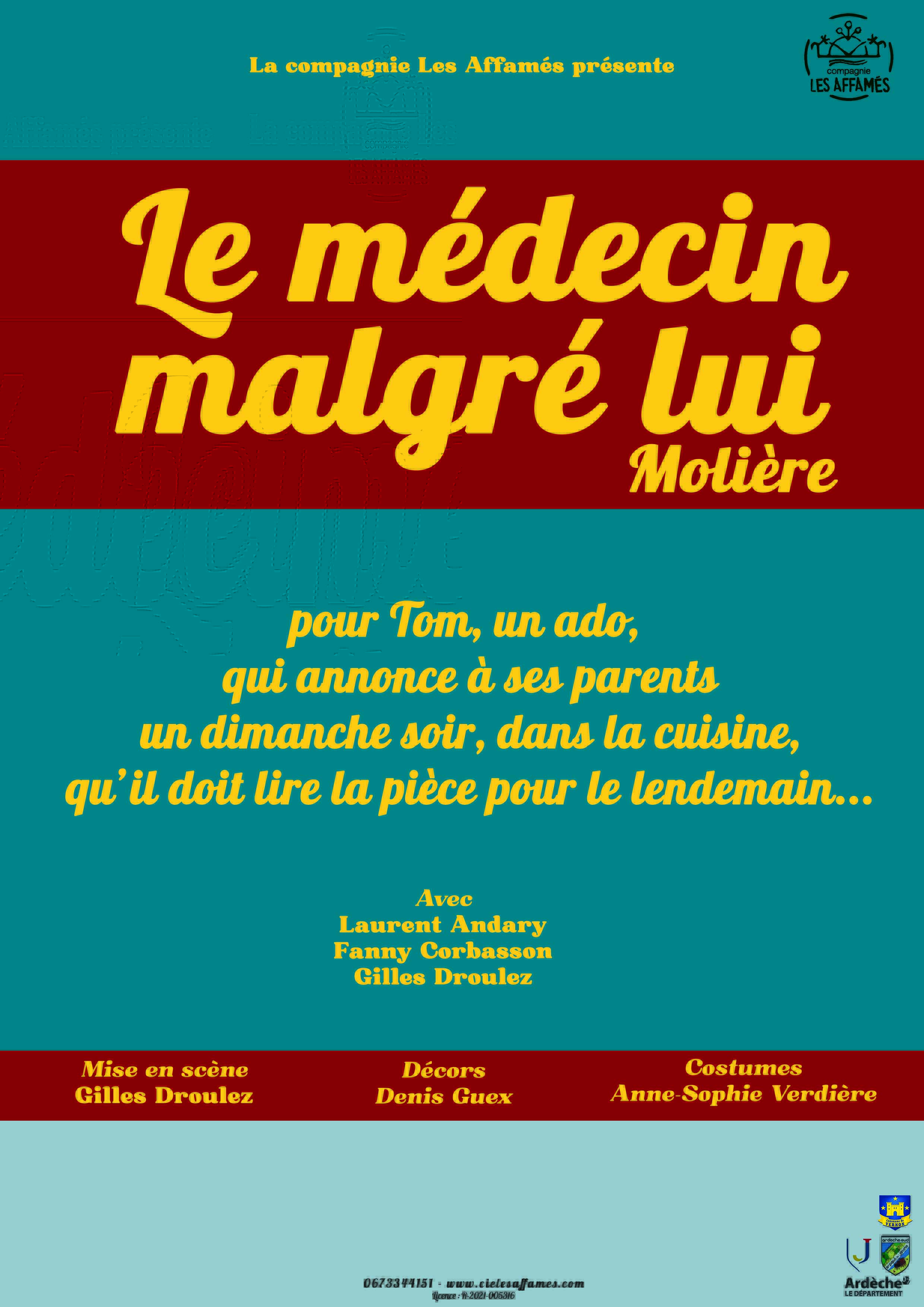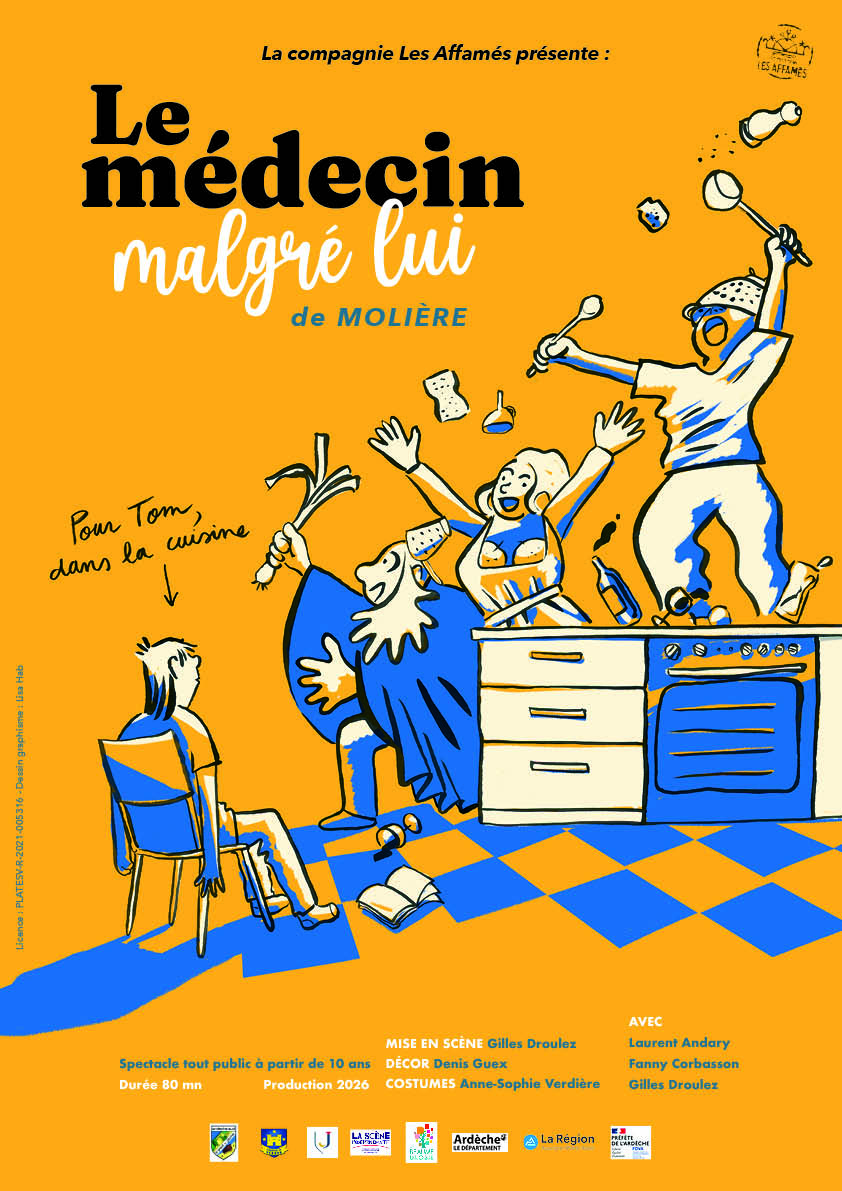 Qui ne s’est jamais retrouvé, étant collégien, dans cette situation embarrassante : constater à 21h le dimanche soir que l’on doit avoir lu un livre pour le lendemain matin…? C’est le cas de Tom, et le livre en question, c’est Le médecin malgré lui. Mais Tom, pour cette fois, a de la chance : ses parents et son parrain, réunis autour d’un repas, connaissent bien la pièce pour l’avoir jouée autrefois, et vont, contre toute attente, se lancer ce fou défi : interpréter pour lui tous les personnages de la pièce avec les éléments qu’ils ont sous la main, dans la cuisine ! Une relecture pimentée d’un classique savoureux, farce intemporelle questionnant pouvoir, identité et faux semblants !
